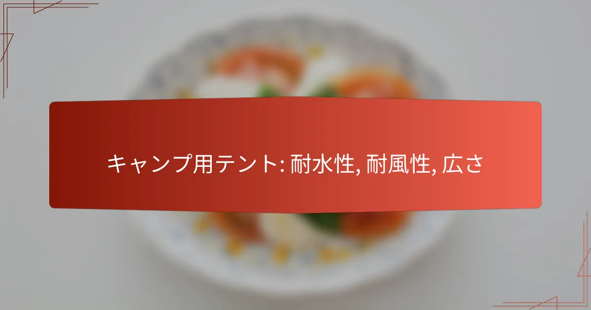 キャンプ用テントを選ぶ際は、耐水性、耐風性、広さのバランスが重要です。これらの要素を考慮することで、快適で安全なキャンプ体験を実現できます。