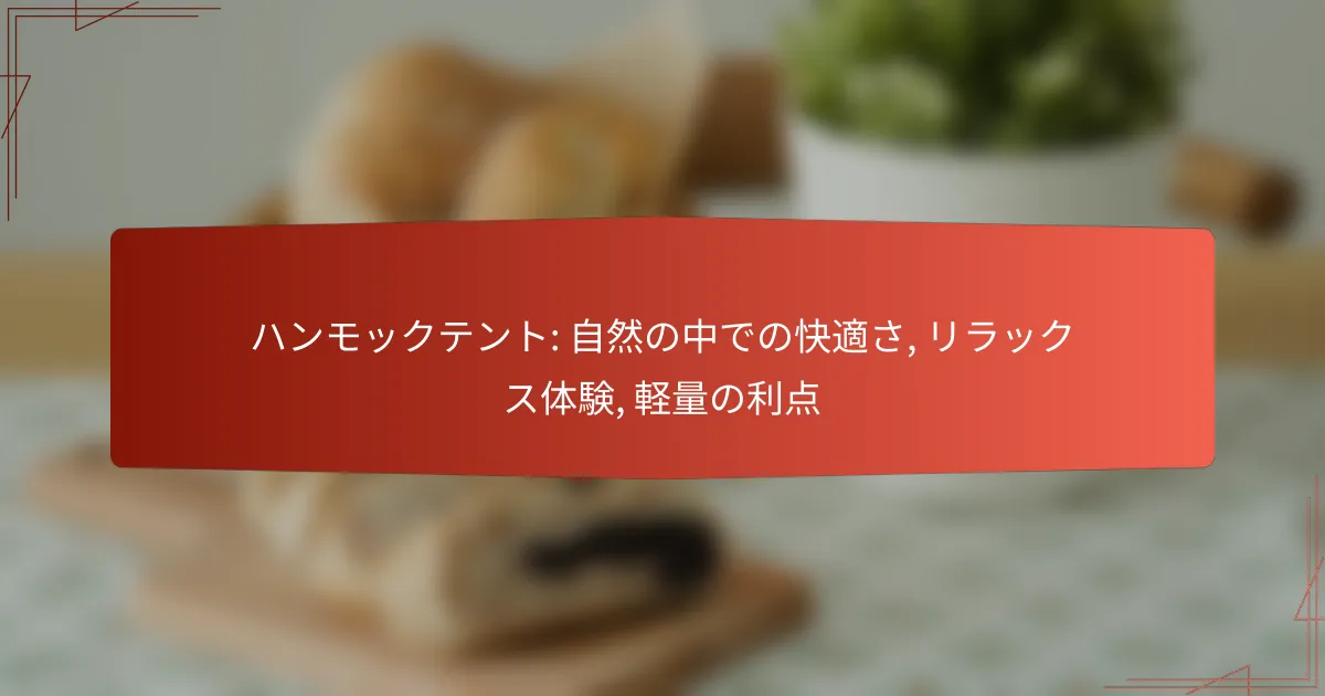 ハンモックテントの設置方法は、適切な場所を選び、必要な器具を使って簡単に行えます。基本的には、木や柱などの安定した支持物にハンモックテントを取り付けることが重要です。