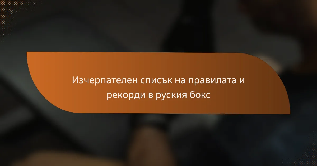 Този обширен списък с проверки очертава основните регулации и записи на бокса в Русия, управлявани от Руския боксов съюз в съответствие с международните стандарти. Той включва основна информация за правилата на състезанията, протоколите за безопасност и допустимостта на атлетите, както и подчертава богатата история на руския бокс чрез забележителните му записи и постижения.