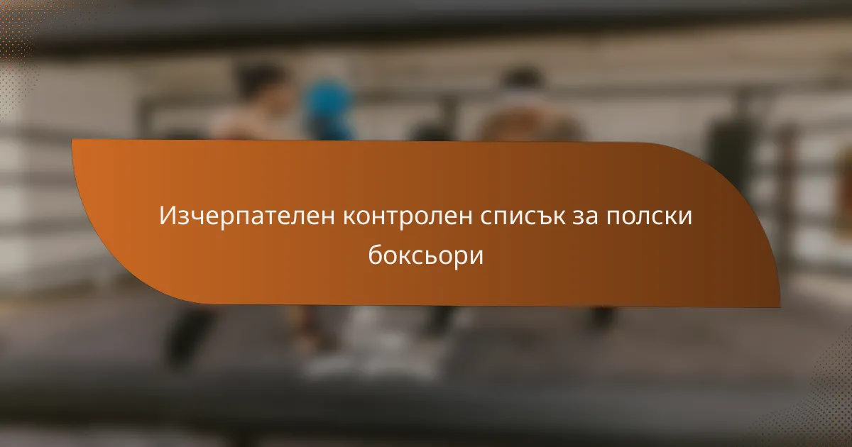 Ключовите елементи на списъка за записване на информация за полските боксьори трябва да включват лична информация, история на мачовете, тренировъчни дневници и здравни записи. Личната информация обхваща името на боксьора, възрастта, категорията по тегло и контактните данни.