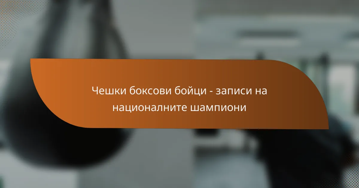 Чешките боксови шампиони са постигнали забележителни успехи, включително спечелване на множество национални титли и успешно участие в международни турнири. Забележителни бойци са представлявали Чехия на Олимпийските игри, демонстрирайки своите умения на глобална сцена. Тези постижения не само повишават профилите на бойците, но и вдъхновяват бъдещите поколения боксьори.