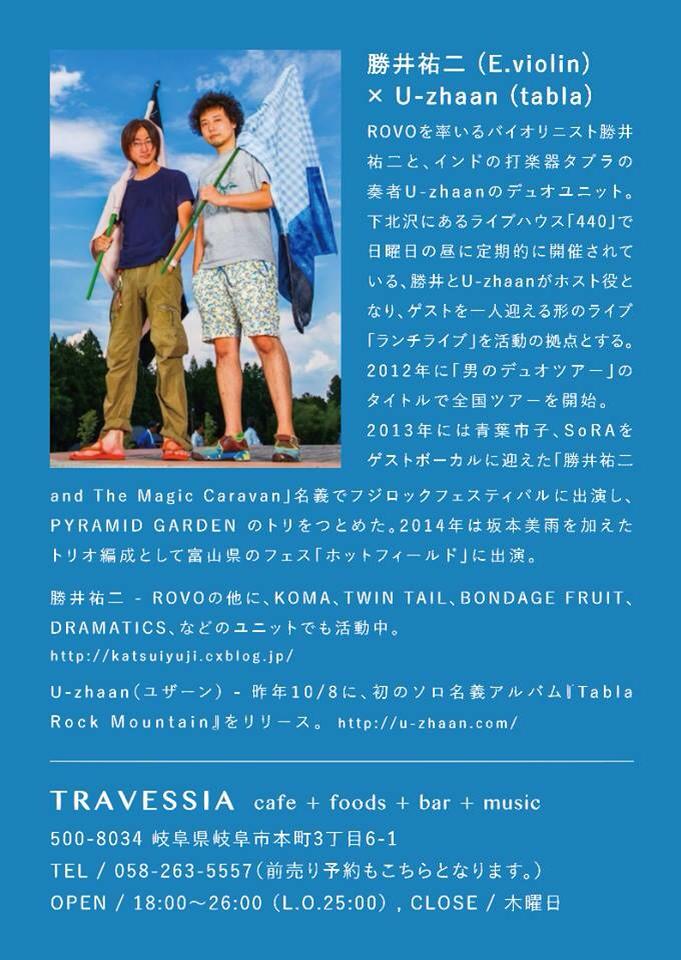 2015年12月1日(火)@岐阜TRAVESSIA 20:30 Start 前売り3,000円 / 当日3,500円