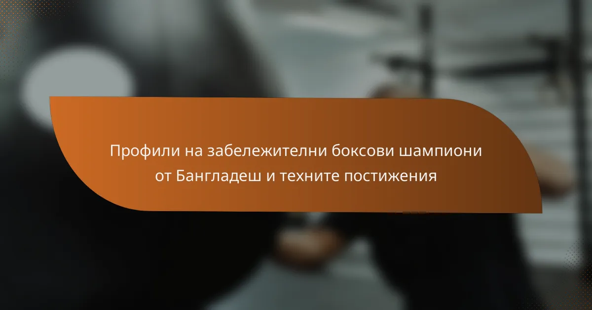 Забележителните боксови шампиони от Бангладеш се издигнаха до известност чрез комбинация от талант, строги тренировки и значителни постижения в национални и международни състезания. Пътят им често отразява смес от лична решителност и влиянието на подкрепящи общности.