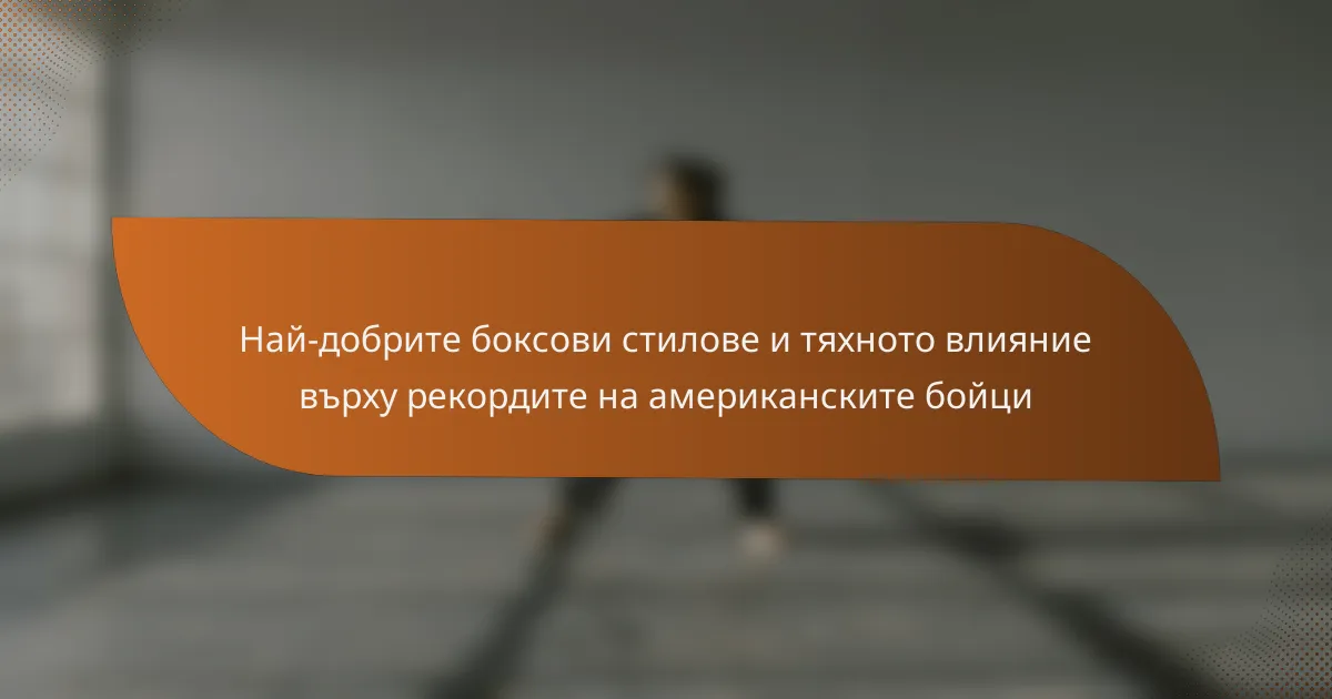 Боксовите стилове играят ключова роля в оформянето на представянето и успеха на боксьорите в Съединените щати. С различни техники като ортодоксален, левичар и смесен стил, всеки стил влияе на стратегията и ефективността на боксьора в ринга. Разбирането на тези стилове е от съществено значение за анализа на рекордите на боксьорите, тъй като те могат да определят изхода на мачовете и да повлияят на кариерата на боксьора.