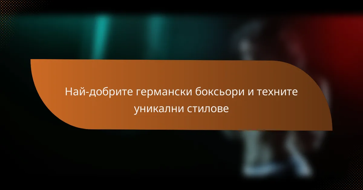 Германските боксьори са известни със своя дисциплиниран подход, съчетавайки технически умения с стратегическо мислене. Уникалните им стилове често подчертават силни основи, стъпки и фокус върху защитата, което ги прави formidable противници на ринга.