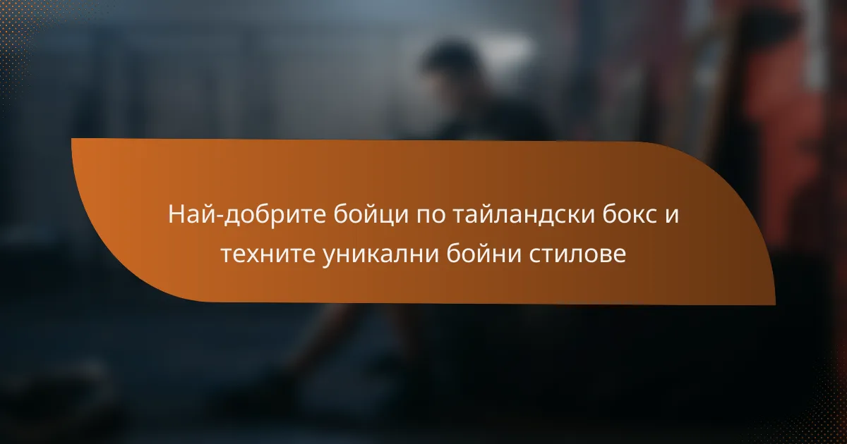 Тайският бокс, известен още като Муай Тай, представя някои от най-добрите бойци в света, всеки от които притежава уникален стил на бой, съчетаващ традиционни техники с модерни адаптации. Тези атлети са известни със своите мощни удари, бързина и стратегическо мислене, което им позволява ефективно да контрират противниците си. Културният произход също играе значителна роля в оформянето на техните техники и методи на тренировка, което води до богато разнообразие от бойни подходи в спорта.